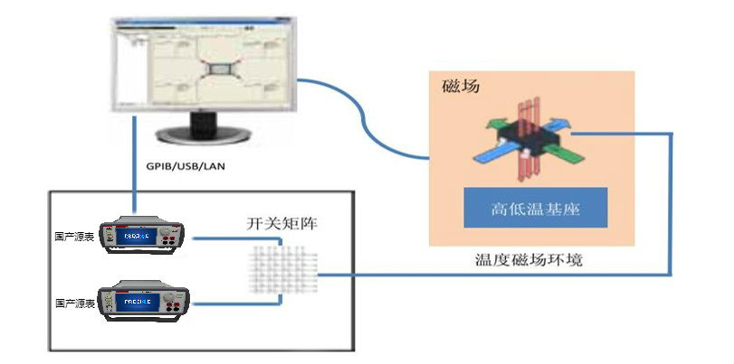 與其余測定各不相同的是霍爾技術指標設置測定中測定點多、連接方式麻煩,核算量大,需外部溫度和電場區域環境等優點,此前基本前提下,人工機械測定就是機會已完成的。霍爾調節作用測定平臺的是可以進行上千到至幾萬左右點的多技術指標設置電腦自動設置成測定,平臺的由Precise S國產源表,2700 引流矩陣開關按鈕和霍爾調節作用測定PC軟件 Cyclestar 等組成的。可在各不相同的電場、溫度和直流電壓下依照測定結果顯示核算出阻值率、霍爾比率、載流子有機廢氣濃度和霍爾轉至率,并制圖折線圖。